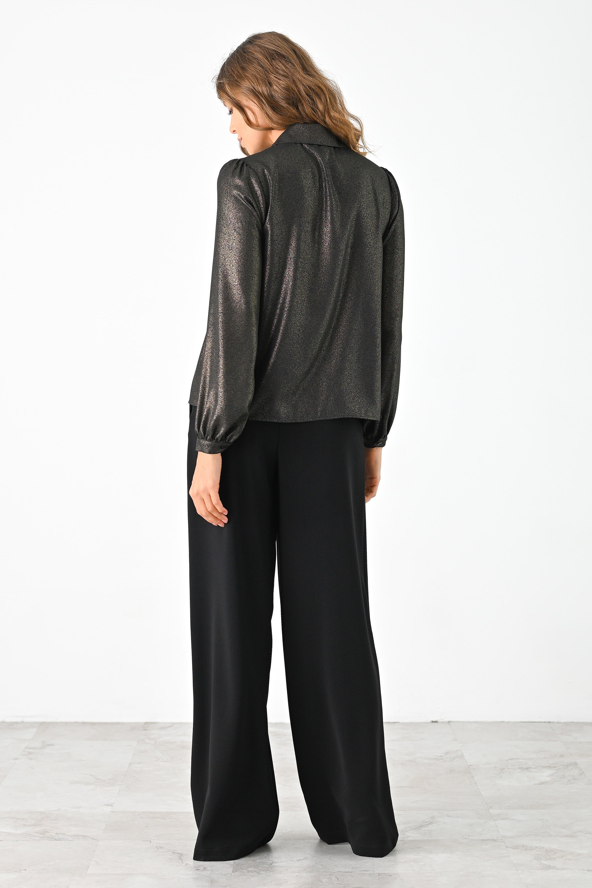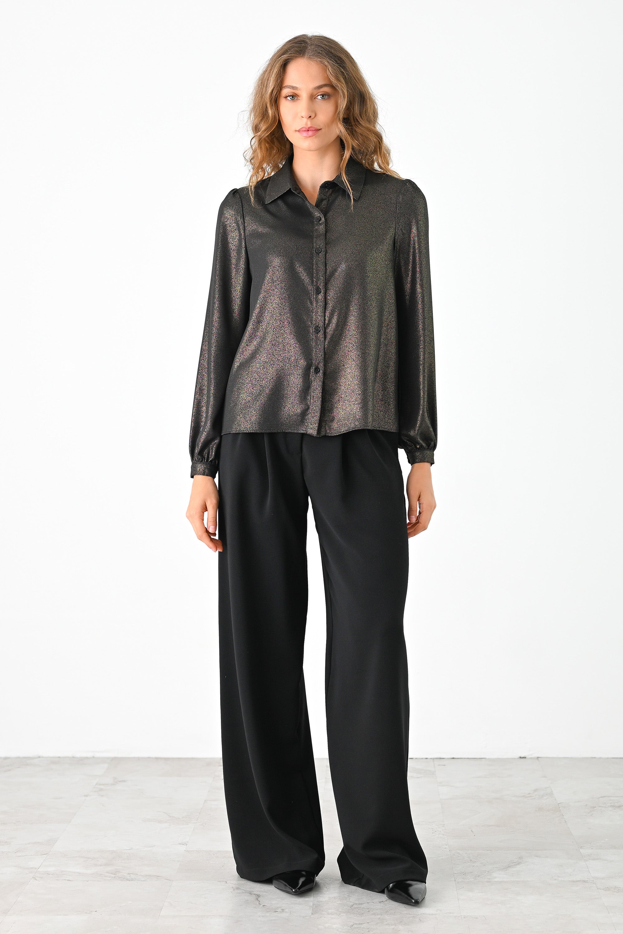 Elevate your wardrobe with this stunning long sleeve button down shirt crafted from luxurious Italian Gold Foiled Georgette fabric. The delicate shimmer catches the light beautifully, creating an eye-catching effect that transitions seamlessly from day to night. The rich lavender and brown violet tones deliver sophisticated elegance, while the soft, flowing georgette drapes gracefully against your body for a flattering silhouette. Perfect for making a refined statement at the office, special events, or whenever you want to feel polished and put-together. The classic button-down design offers versatile styling options—wear it solo or layer it effortlessly. Experience the luxury of Italian craftsmanship with every wear.