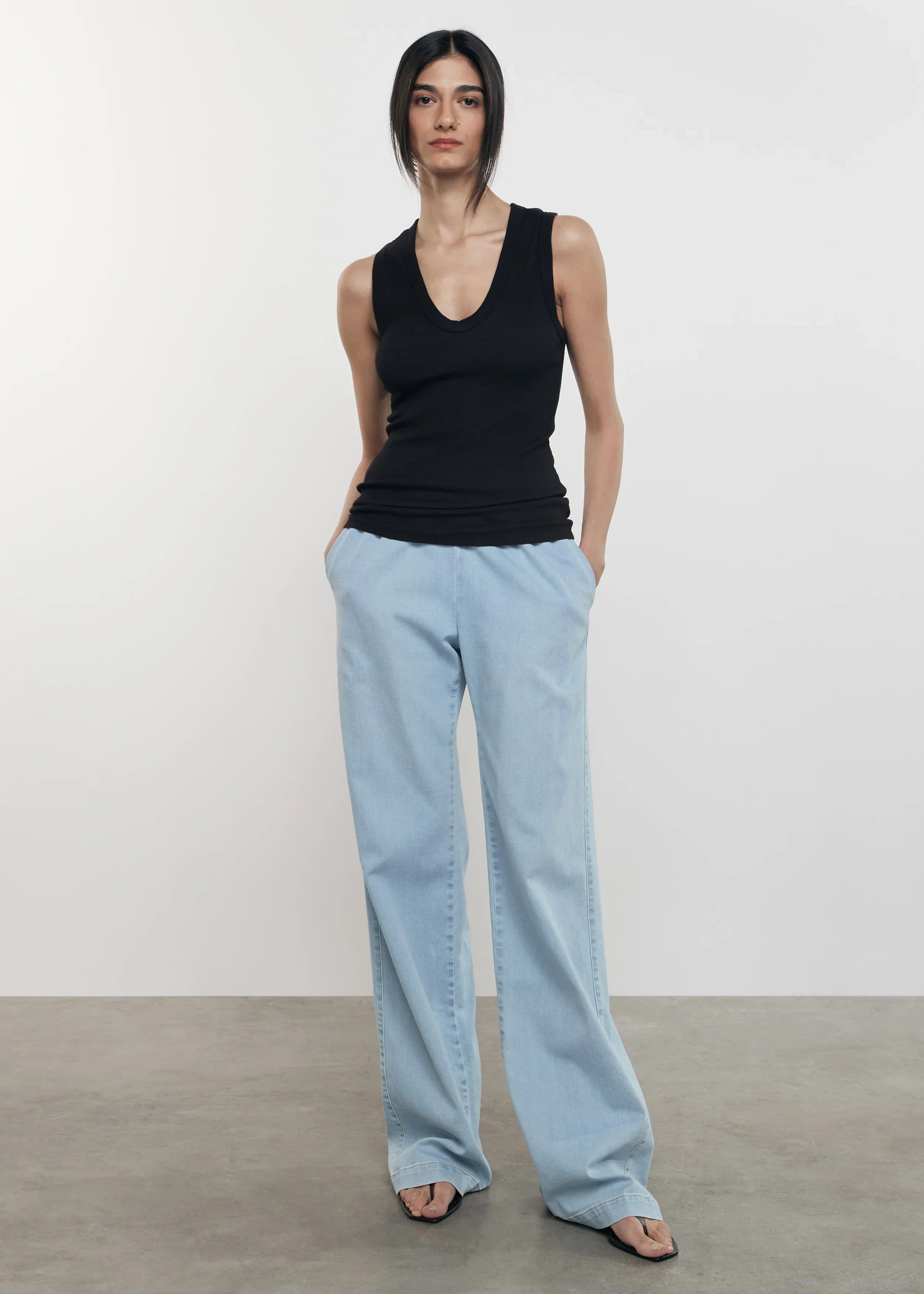 Elevate your summer wardrobe with the Enza Costa Textured Knit Sleeveless U Tank Top. Made from a high-quality textured knit fabric, this tank top is both comfortable and stylish. The sleeveless design and U-neckline create a flattering silhouette, making this top a must-have for any fashion-forward individual.