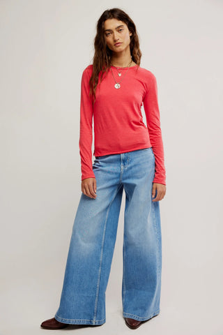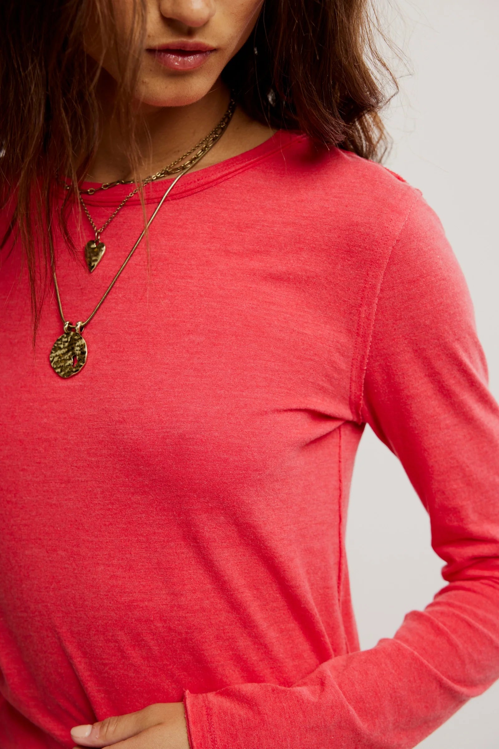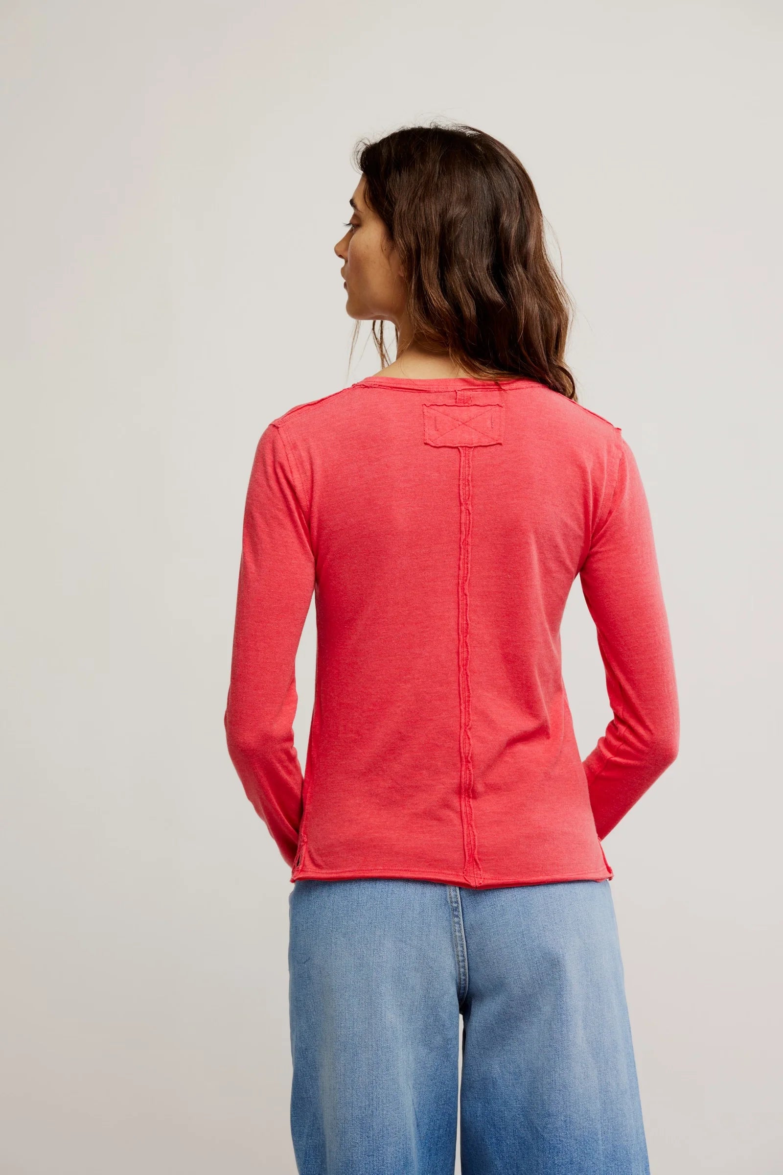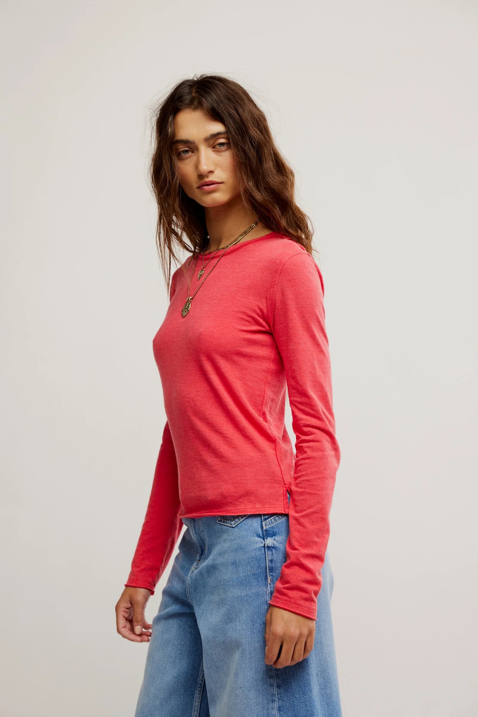 The Free People Nova Long Sleeve Tee from our We The Free collection offers effortless style with a soft heathered fabric and a relaxed fit. Featuring a crew neckline, slightly dropped shoulders, and raw hems, this tee adds subtle texture with raised seams. Crafted with conscious materials, it’s a comfortable, laid-back essential perfect for everyday wear.