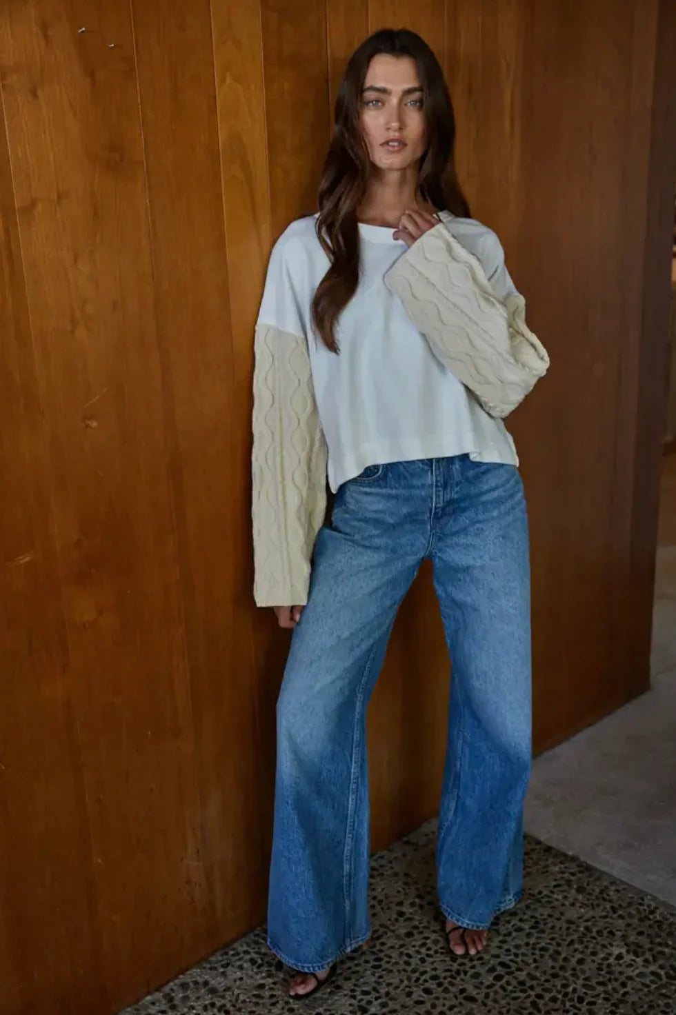 Elevate your everyday wardrobe with the Talk to Angels Cable Sleeve Sweater, a sophisticated blend of comfort and style. Crafted from soft cotton French terry, this pullover features a classic round neckline and long sleeves adorned with eye-catching cable knit detailing. The relaxed fit makes it perfect for layering or wearing solo, while the premium fabric ensures breathability and durability through countless wears. Whether you're dressing up for brunch or keeping it casual at home, this versatile sweater delivers effortless elegance that works season after season.