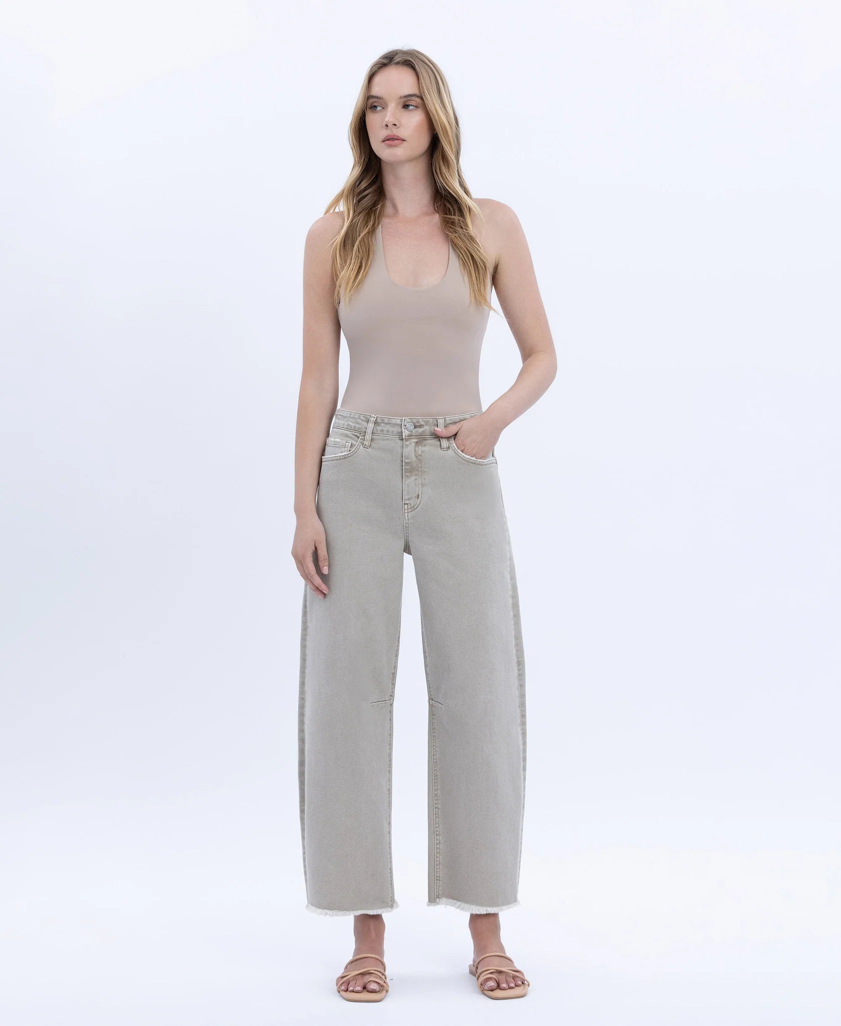 Slip into effortless style with these Vervet Super High Rise Barrel Jeans. Crafted from soft stretch denim, they deliver all-day comfort without compromising on support. The ultra-high rise cinches at the waist for a flattering silhouette, while the cropped barrel leg and frayed hem create an undeniably cool, modern edge. Perfect for anyone seeking that sweet spot between comfort and confidence—wear them with everything from sneakers to heels and own every moment.