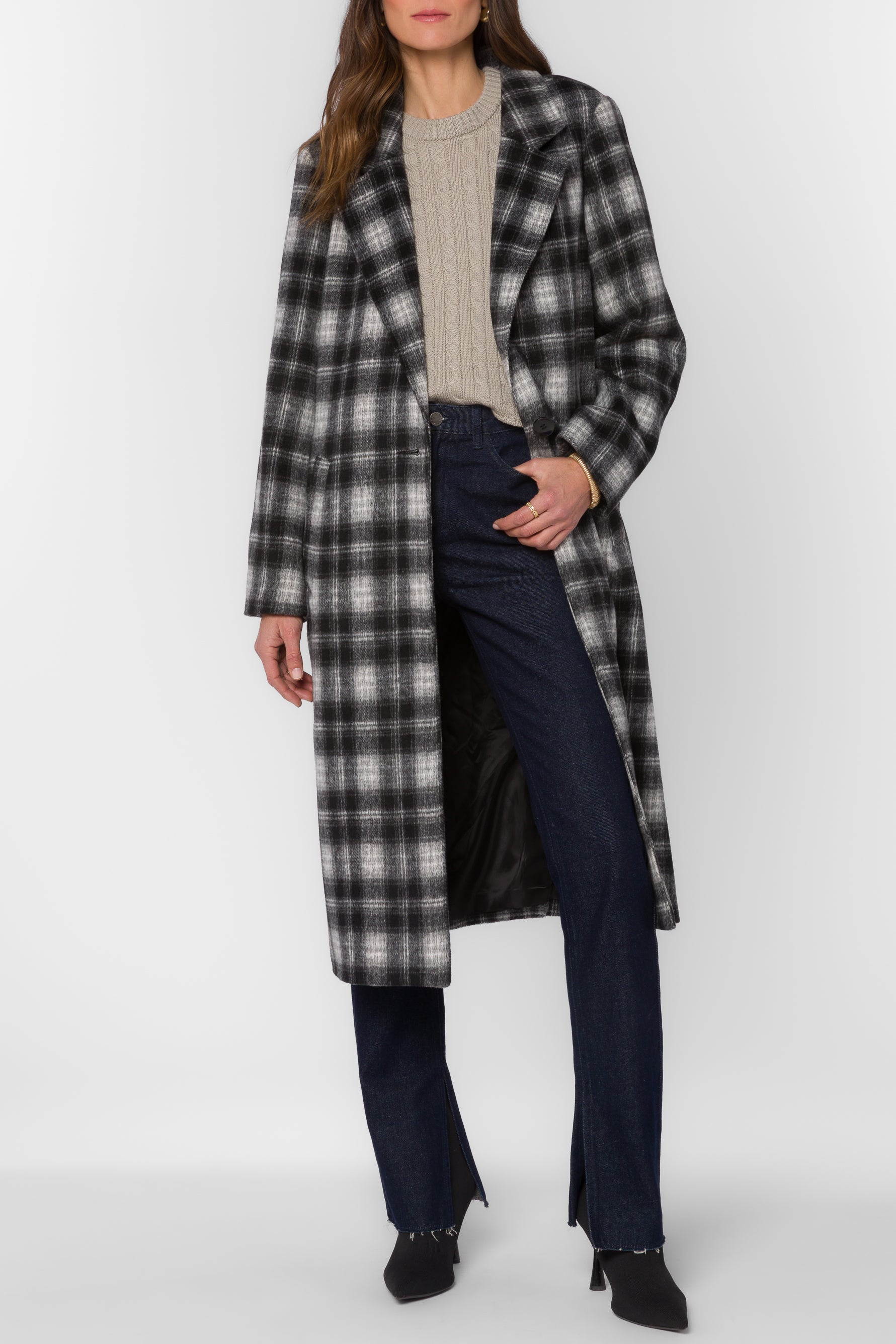 Elevate your outerwear collection with the Velvet Heart Myrtle Jacket, a stylish long jacket featuring a cozy lined interior perfect for cooler days. Its sophisticated black and grey tones offer versatile elegance, effortlessly complementing any outfit. Designed for comfort and warmth without sacrificing style, this jacket is ideal for those seeking refined layering during transitional seasons. Make a statement with a piece that combines practicality and fashion seamlessly.