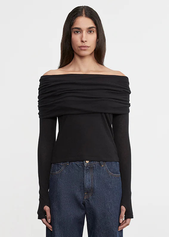 Experience unparalleled comfort and style with the Enza Costa Cashmere Off Shoulder Top. Crafted from the brand’s soft cashmere jersey, this slim-fit piece offers a flattering silhouette while the off-shoulder design adds a touch of effortless elegance. Long sleeves with thumbholes provide cozy coverage and a modern edge, making it perfect for both casual and chic occasions. Elevate your wardrobe with this versatile, luxurious top that blends warmth and sophistication seamlessly.