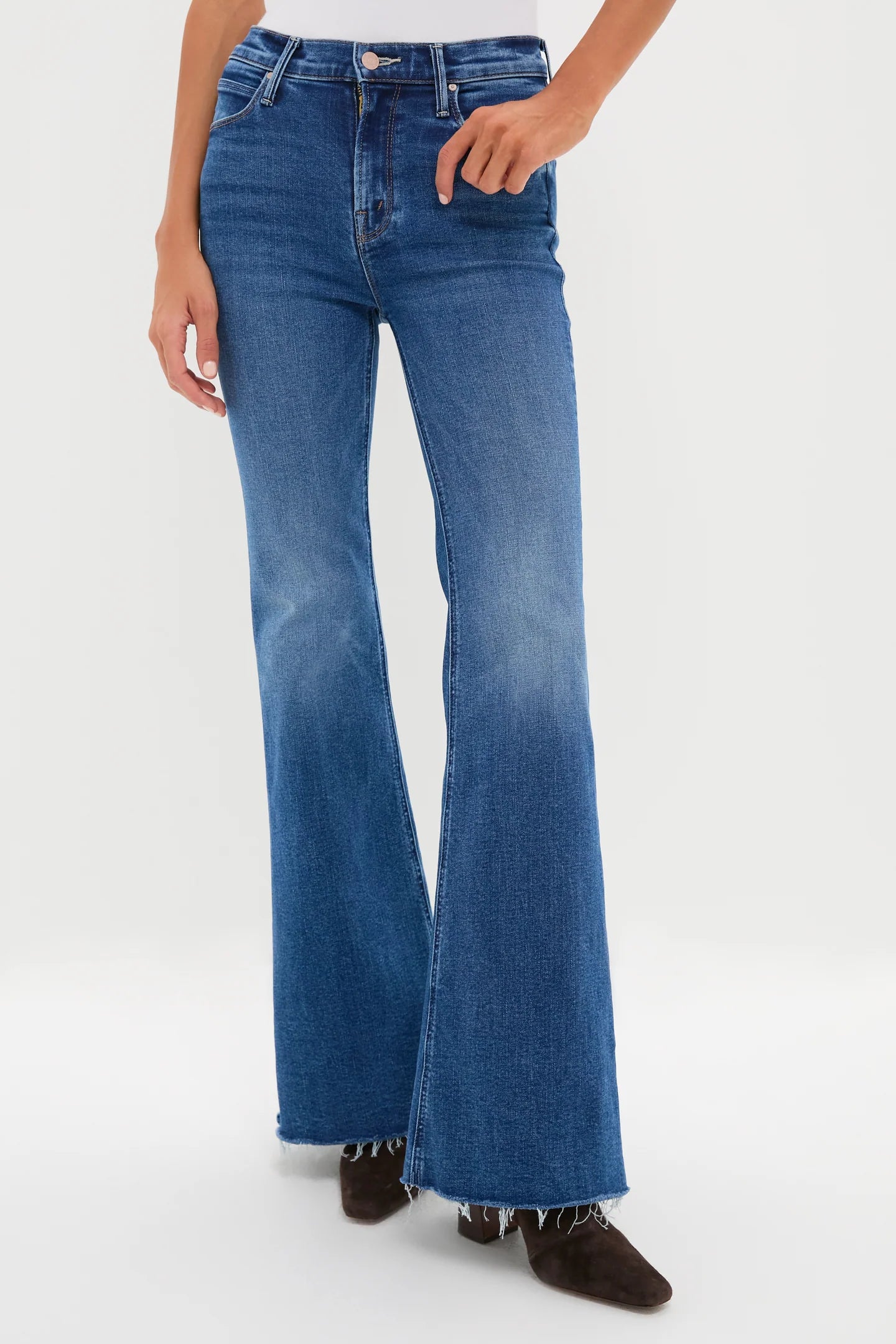 Elevate your everyday style with the Mother Doozy Sneak Fray Jeans in mid-blue. These high-rise flares feature a flattering 32-inch inseam, artfully distressed knees, and a trendy frayed hem that adds instant edge. Crafted from comfortable stretch denim with subtle whiskering and fading, they're designed to move with you. Style them with your favorite tees, knits, boots, or flats—these versatile jeans transition seamlessly from casual outings to weekend adventures. A wardrobe essential that delivers both comfort and contemporary flair.